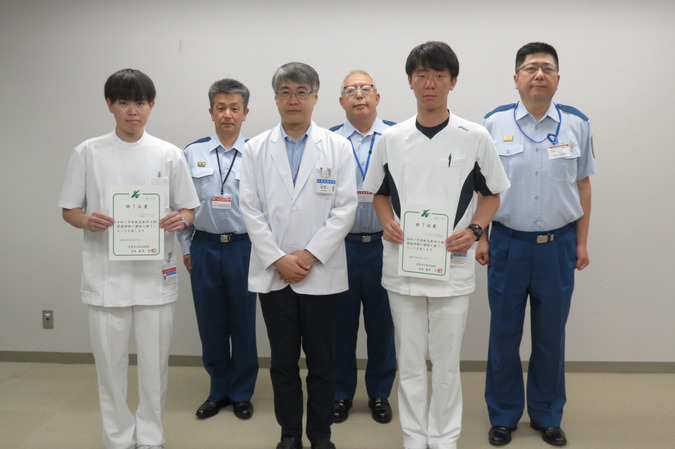 上川北部消防事務組合から2名の救急救命士の実習を受け入れ、約1か月の病院実習が終了しました。この実習は、救急救命士の資格を取得した後に救急業務を開始するに当たり病院での実習を行うもので、院内では各診療科の医師の指導のもと患者さんの対応や処置に関する研修を実施しました。
