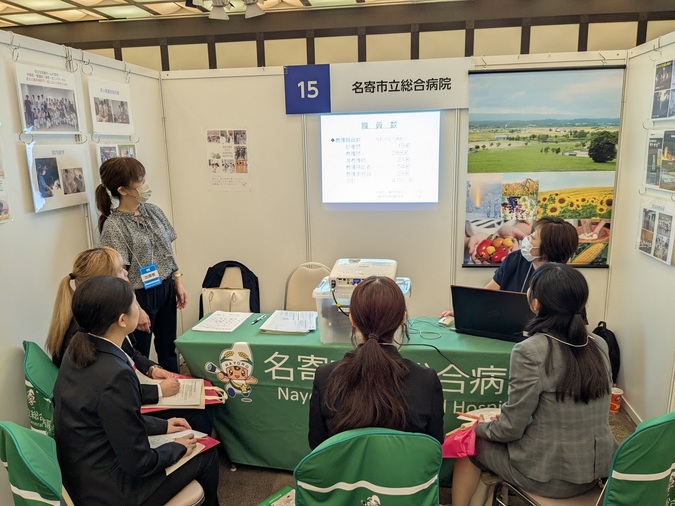 令和7年7月5日に札幌で開催された看護学生就職セミナー(マイナビ主催)に名寄市立総合病院が参加しました。13名の看護学生が当院のブースを訪れ、看護部長から病院の概要や看護師の働き方・キャリアサポートなどを紹介し、PRをしてきました。