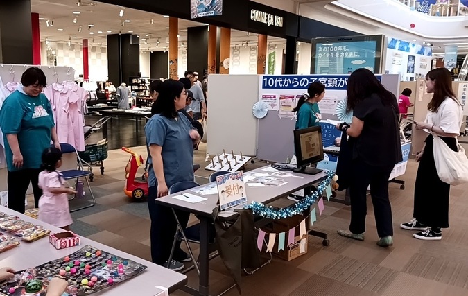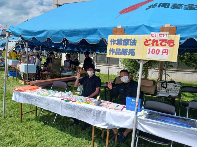 令和7年7月6日名寄市総合福祉センターで開催された「第39回ふれあい広場2025なよろ」に、精神科作業療法部門が出店しました。精神科の入院患者さんが治療の一環(作業療法)で作成したコースターや編み物などの作品を販売し、スタッフのほか入院患者さん数名が一緒に販売にあたりました。