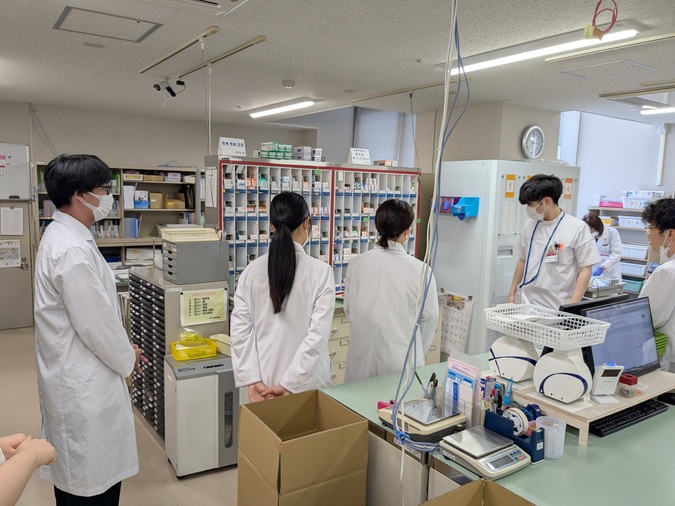令和7年8月20日、薬学部の学生を対象に「病院見学会・説明会」を開催しました。 当院の雰囲気や病院薬剤師の業務を実際に見ていただき、将来の就職先として検討してもらえるよう企画したものです。