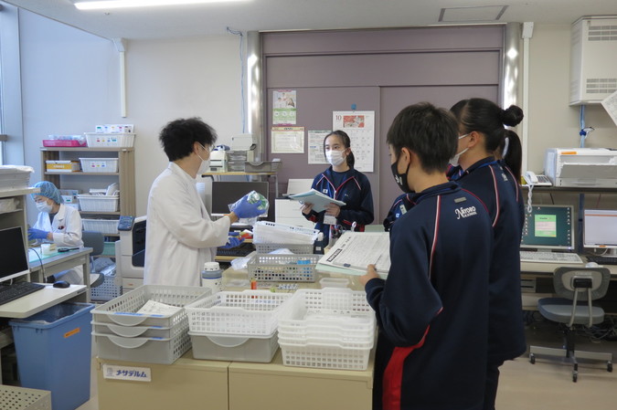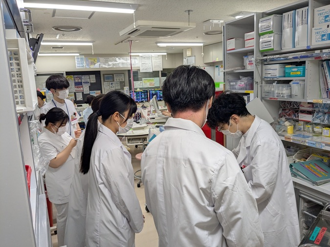 病院薬剤師の業務はもちろん、カテーテル治療の現場や救命救急センターも見学し、薬剤が医療現場でどのように活用されているかを学びました。さらに、薬剤師の当直業務の様子も体験しながら、将来の職業イメージを膨らませていました。