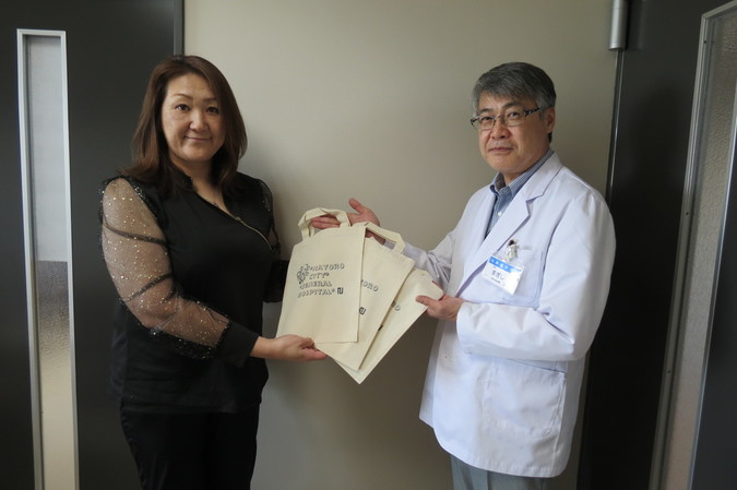 名寄市立総合病院サポートクラブから、病院オリジナルデザインのバッグをご寄贈いただきました。看護師等の職員募集活動に活用させていただく予定です。ご支援に心より感謝申し上げます。