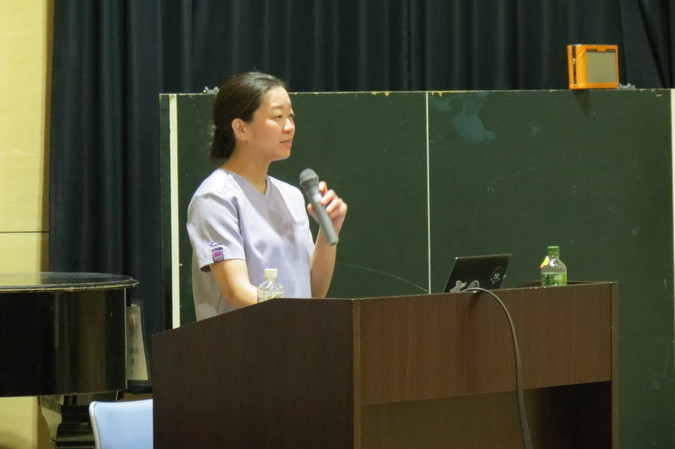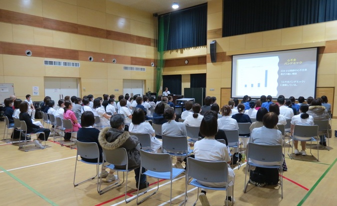 講座では、脂肪肝が起こる仕組みや放置した場合のリスク、診断方法、改善に向けた生活習慣などについて、エコー画像を用いながら分かりやすく解説しました。