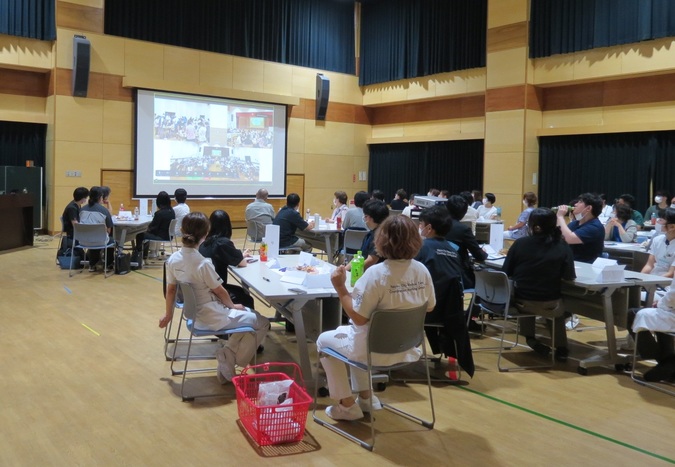 病院で働く多くの職種を知ってもらうため、スタッフ自らが登場する動画を事前に作成し、児童に視聴していただきました。「もし学校の先生が倒れて病院に行ったら…?」という場面から始まる動画は子どもたちにわかりやすく、病院のお仕事のやりがいなども伝えることができました。