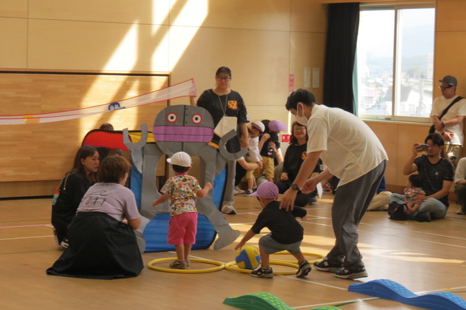 令和7年9月6日、院内保育所「つぼみ保育所」の運動会を開催しました。 天候に左右されない体育館での開催で、3歳未満の親子運動会と、3歳以上の子どもたちによる運動会の二部制で実施しました。