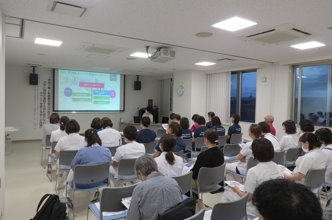 今回の研修では、「地域で輝く看護職を育む共創の道~大学と病院が連携する切れ目のないキャリア支援と未来への投資~」をテーマに、升田先生よりご講演をいただきました。学生と看護師、教員と指導者の交流を通じて、大学と病院が連携しながら看護職を育てる体制の重要性について、改めて学ぶ機会となりました。