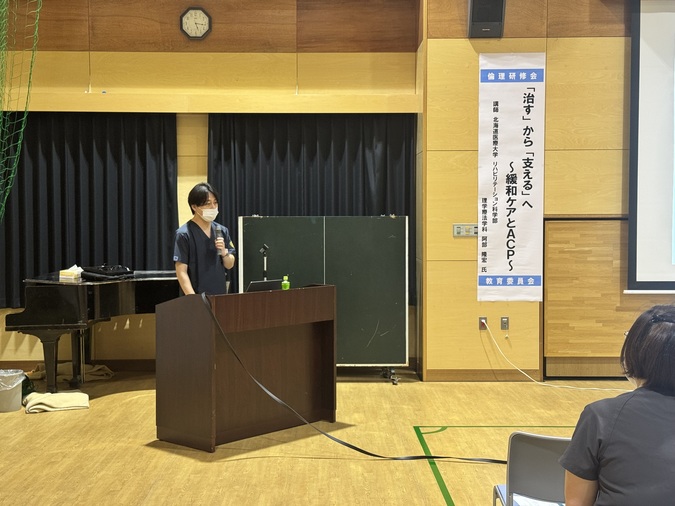 令和7年11月14日、院内倫理研修会を開催し、「″治す″から″支える″へ~緩和ケアとACP~」をテーマに、北海道医療大学 リハビリテーション科学部 理学療法学科の阿部隆宏先生にご講演いただきました。