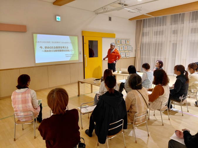 令和8年3月9日、院内保育所「つぼみ保育所」にて研修会を開催しました。