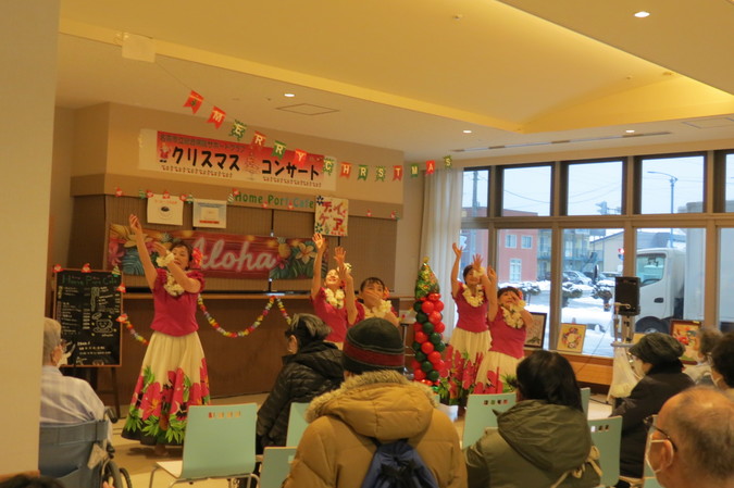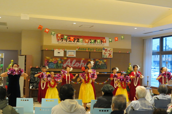 市内のフラダンスサークル「プルメリア名寄」の皆様が出演し、ゆったりとしたフラダンスや子どもメンバーの可愛らしいダンスが次々と披露されました。