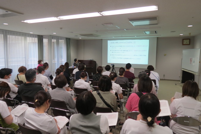 令和7年7月1日、当院小児科の堀井先生を講師に「子どもの発達障がいについて」職員研修を実施しました。子ども支援チームは、子どもの虐待の予防・早期発見・対応に努めていくために、院内の多職種の職員で作られたチームです。研修では様々な発達障がいと特徴、関わり方について知識を深めました。