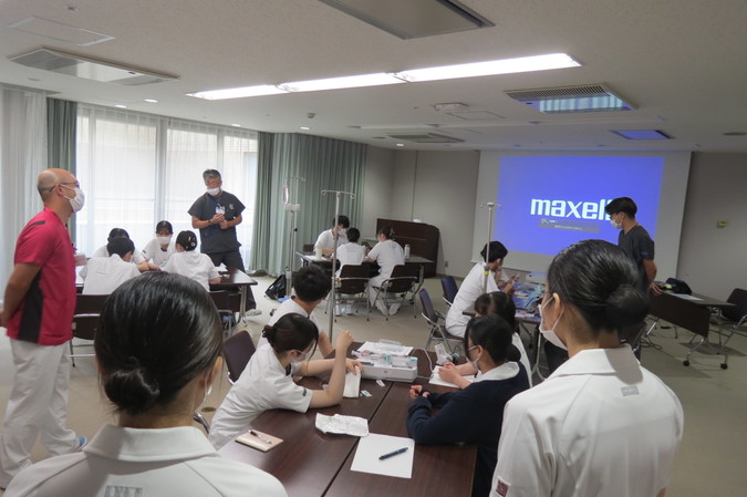 病院の概要や教育制度の説明や、院内各病棟の見学、また当日院内で実施していた「新人看護師技術研修」の様子を見学しました。最後に、入職後のイメージを具体的に持っていただけるよう採用1年目の研修活動の流れを動画で紹介しました。