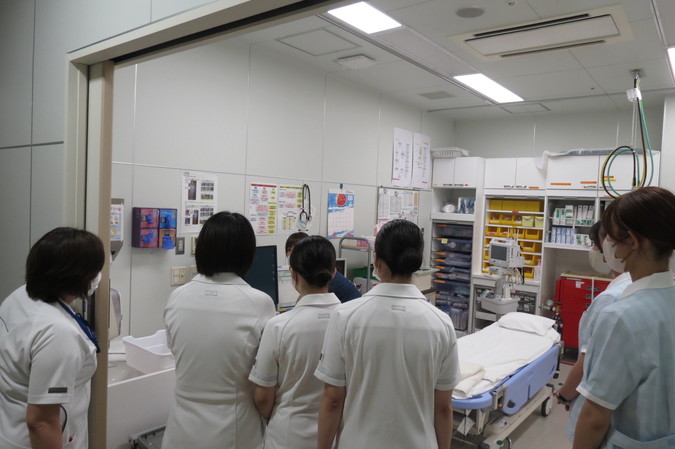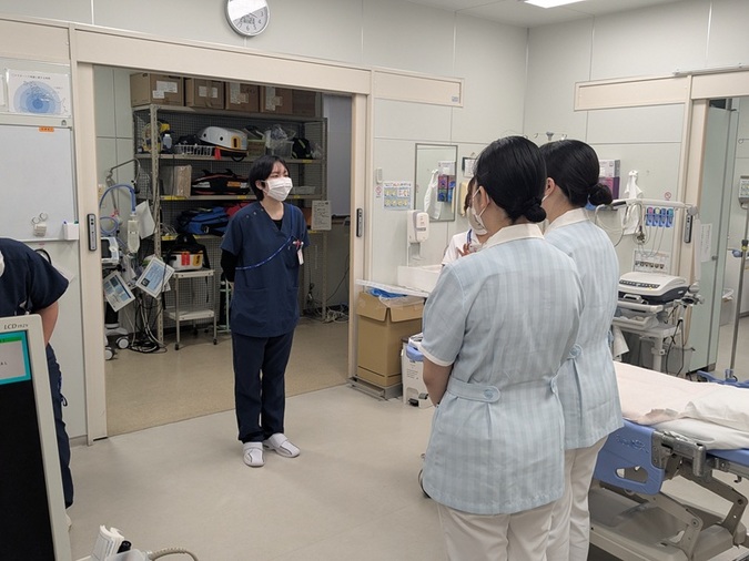 病棟見学では、学生が希望した病棟に加え、救急外来やICUを含むすべての病棟を見学していただきました。病棟科長らが案内し、実際の働き方や病棟の雰囲気を感じていただける内容となりました。