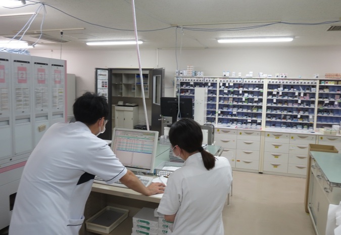 当日は、院長と薬剤部長から、病院の概要やこの地域における薬剤師の現状についての説明と、その後 薬剤部(薬局)内での調剤業務や病棟での服薬指導など、病院薬剤師の具体的な業務を見学していただきました。最後に、今年度採用となった若手薬剤師との座談会を実施し、「なぜ病院を選んだのか」「働いてみて感じたこと」など、率直な意見交換が行われました。