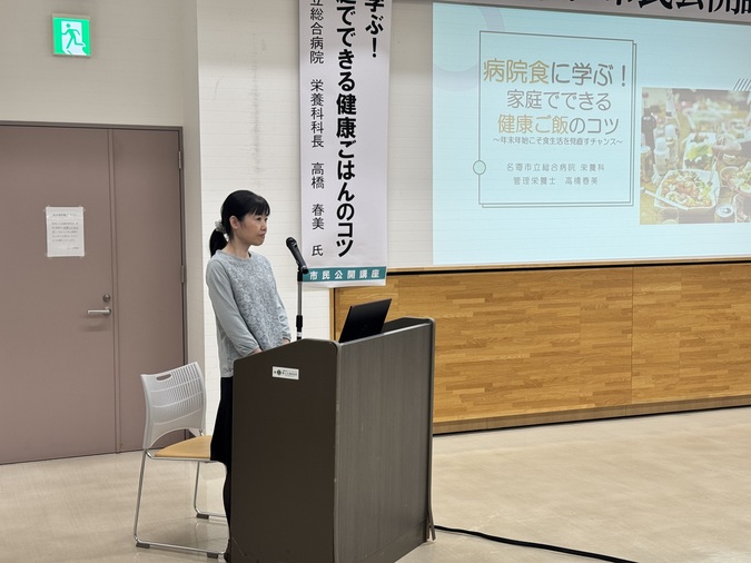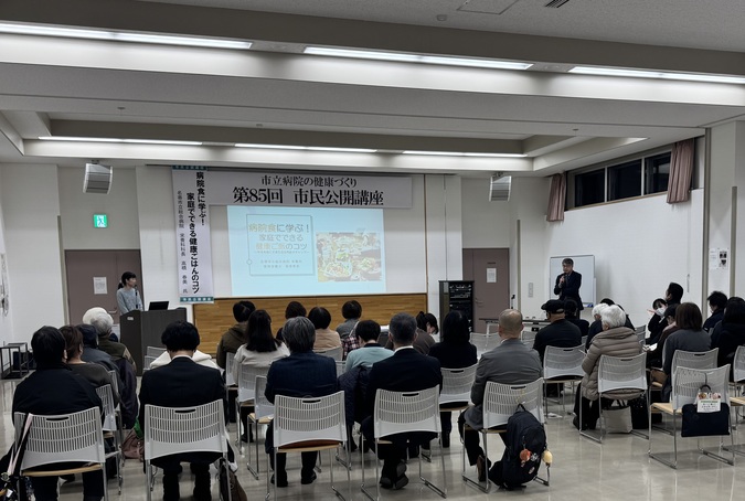令和7年11月19日、当院栄養科管理栄養士 高橋春美が講師となり、「病院食に学ぶ!家庭でできる健康ごはんのコツ ~年末年始こそ食生活を見直すチャンス~」と題した市民公開講座を開催しました。