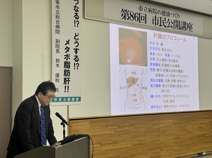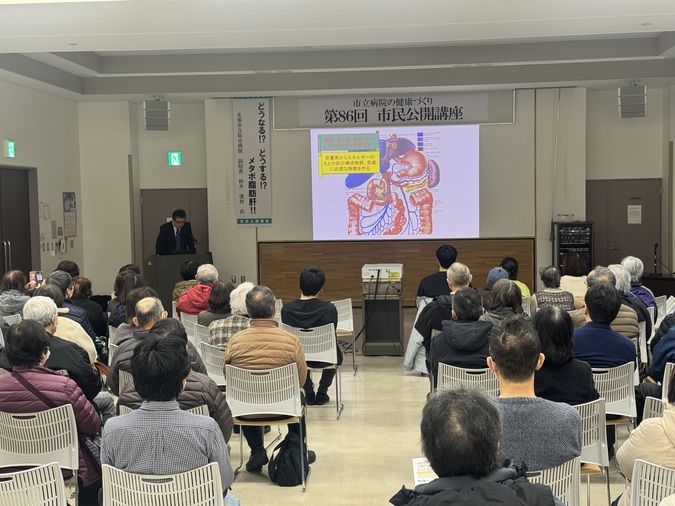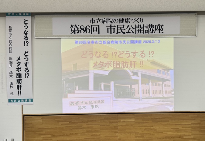 令和8年3月13日、当院の消化器内科 副院長・鈴木康秋先生を講師に、「どうなる!?どうする!?メタボ脂肪肝!!」をテーマとした市民公開講座を開催しました。