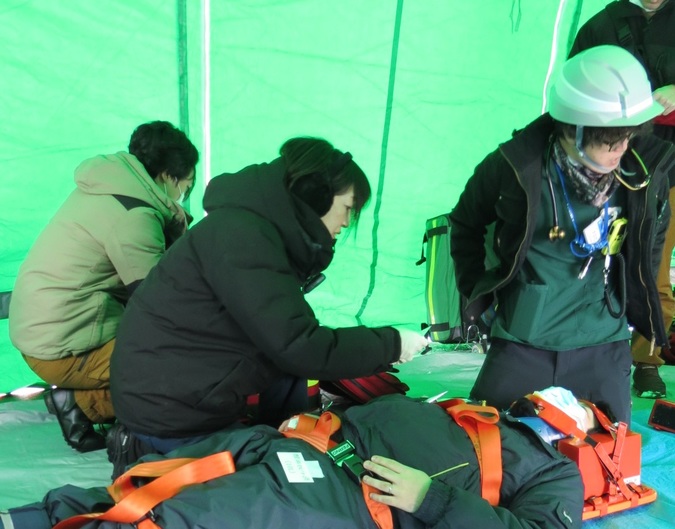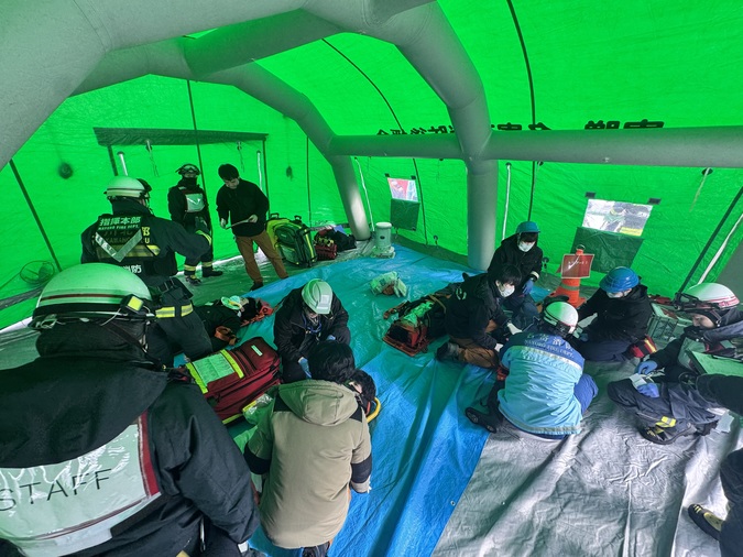 医師・看護師は、救助された多数の傷病者に対してトリアージや応急処置を行い、ロジスティクス担当は状況整理や搬送調整を担いました。消防の救急隊と連携して進められた訓練は、現場さながらの緊張感に包まれ、実践的な内容となりました。