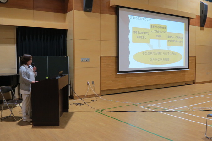 令和7年12月12日、看護部長を講師に院内倫理研修を開催しました。 患者さんの尊厳を守る看護を実践するため「2040年に向かって私たちができること ~私たちは何をする人なのか~」をテーマに、これまでの看護経験を踏まえ、これからの時代に求められる看護のあり方について語られました。