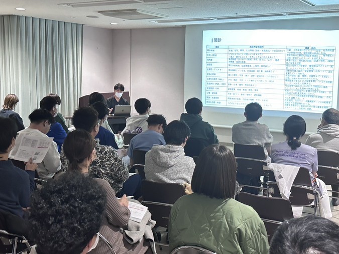 令和7年11月26日、名寄・士別地区のリハビリスタッフ(理学療法士・作業療法士・言語聴覚士)を対象に、勉強会を開催しました。 講師は、先日の倫理研修会でもご登壇いただいた北海道医療大学リハビリテーション科学部理学療法学科の阿部隆宏先生で、テーマは「リハビリスタッフのためのフィジカルアセスメント」でした。患者さんの身体の状態の見方や、必要となる知識・技術の基本について、わかりやすくご講義いただきました。